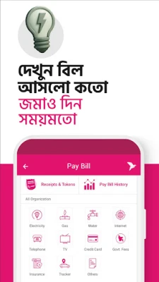 استمتع بسرعة لا مثيل لها وراحة بال تامة مع معاملات رمز QR فائقة السرعة. سواء كنت تدفع في المتاجر، أو تسحب نقدًا من نقاط الوكلاء، أو ترسل الأموال إلى مستخدمي bKash الآخرين، فإن المسح السريع لرمز QR يجعل العملية خالية من الأخطاء وفعالة بشكل مدهش. بالإضافة إلى ذلك، يضع bKash App جميع عروضك المفضلة في متناول يدك، ويقدم اقتراحات مخصصة للخدمات والتجار الذين قد يثيرون اهتمامك. لا تفوت أبدًا أفضل الصفقات، وقم بإعادة شحن رصيد هاتفك المحمول لجميع مشغلي الشبكات الرئيسيين بسهولة، أو سدد فواتير الخدمات الشهرية كالكهرباء والغاز والإنترنت من منزلك.