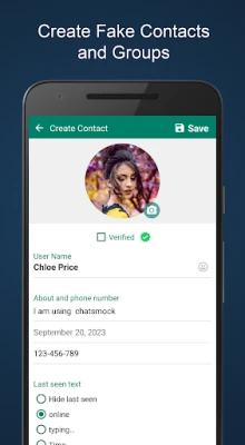يُتيح لك تطبيق Fake Chat ChatsMock Text Prank إنشاء محادثات دردشة وهمية واقعية لمقالب ممتعة مع أصدقائك. ابتكر محادثات وملفات تعريف زائفة للترفيه. استمتع بميزات مثل المكالمات الصوتية والمرئية المزيفة والتحكم الكامل في الحوارات لإضفاء جو من المرح والفكاهة.