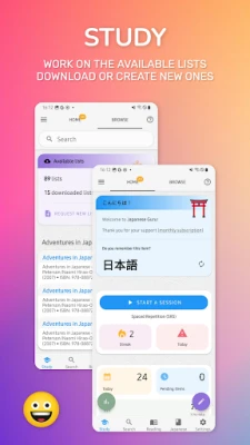 يتميز **Japanese Guru** بمنهج تعليمي منظم ومصمم بعناية فائقة، يجهزك لاختبارات JLPT وJFT وNAT-TEST الرسمية من خلال جلسات ذكية تركز على الكتابة والقراءة والترجمة. استكشف مكتبة ضخمة تضم أكثر من 3000 رمز كانجي، مع رسوم متحركة توضيحية لترتيب الخطوط وممارسات موجهة لتعلم الكتابة خطوة بخطوة. كما يتيح لك التطبيق إنشاء وإدارة قوائم دراسية مخصصة، أو الاستفادة من قوائم جاهزة تتوافق مع مستويات JLPT والكتب المدرسية الشائعة، مع قوائم ذكية لمراجعة العناصر الصعبة وتتبع الأخطاء بدقة.