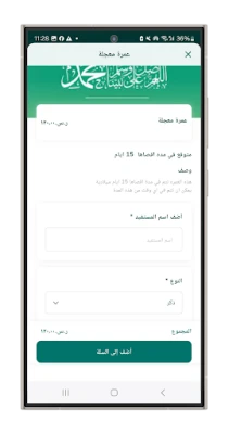 المبادرة تُسهّل أداء مناسك العمرة بالنيابة عن متوفى أو مريض غير قادر. يربطك التطبيق بأفراد وجهات موثوقة ومتخصصة لتقديم خدمة العمرة عن الغير، لضمان إتمام الشعيرة المباركة بكل يسر واطمئنان.
